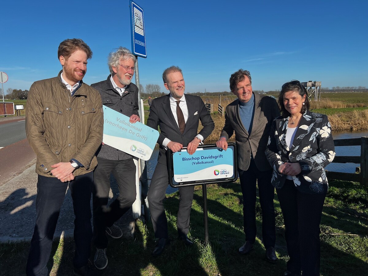 In een korte bijeenkomst onthulden de burgemeesters Géran Kaai van Rhenen en René Verhulst van Ede op 2 maart nieuwe borden langs het Valleikanaal met de naam ‘Bisschop Davidsgrift’….