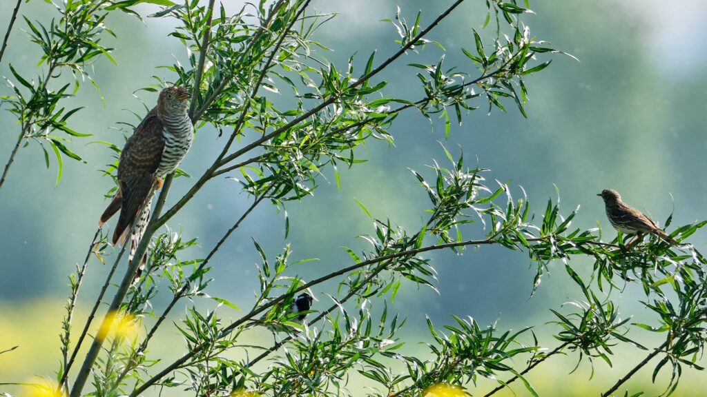 Foto onder: Koekoek met graspieper en rietgors in het wilgenstruweel (© Gert Kaasschieter)