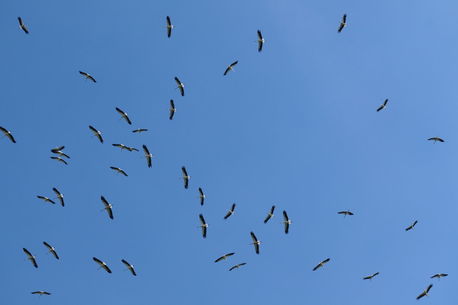 Foto onder: Ooievaars bekijken het maaien © Hans Vellema