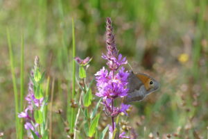 Het gaat slecht met de insecten, maar niet overal. Samen met andere vrijwilligers telt Michiel Wallis de Vries al ruim dertig jaar vlinders in de Bennekomse Meent. Dit is een oud natuurreservaat met een bloemrijk natuurgrasland tussen Bennekom en Veenendaal, wat nu is opgenomen in de Binnenveldse Hooilanden. Vlinders die hier voorkomen kunnen zich nu gaan uitbreiden over de Binnenveldse Hooilanden. De eerste soorten die dat doen zijn het bruin zandoogje (zie foto) en het icarusblauwtje. Maar ook van het hooibeestje en het groot dikkopje zijn er al waarnemingen in de nieuwe natuur. Het hooibeestje is nu nog vooral op gele composieten te vinden.