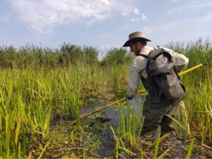 Thomas Kroon, vertelde over de grote modderkruiper, waar hij als beheerder van Mooi Binnenveld en tevens onderzoeker bij RAVON, onderzoek naar gedaan heeft in de Binnenveldse Hooilanden. Het gaat goed met de Grote modderkruiper met name in de herstelde Kromme Eem. Dit compenseert het verlies in een aantal dichtgegooide of bewerkte drainagesloten. Het extensieve schonen van de watergangen (minder, gefaseerd en voorzichtig) en van het waterpeil spelen hierbij een belangrijke rol. De ontwikkeling van de Achterbergse Hooilanden kan ook bijdragen aan de uitbreiding van de Grote modderkruiper.